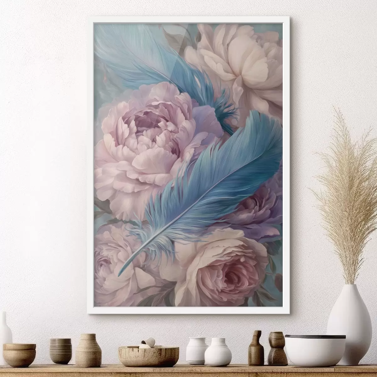 Poster plumas entre peonías f47940