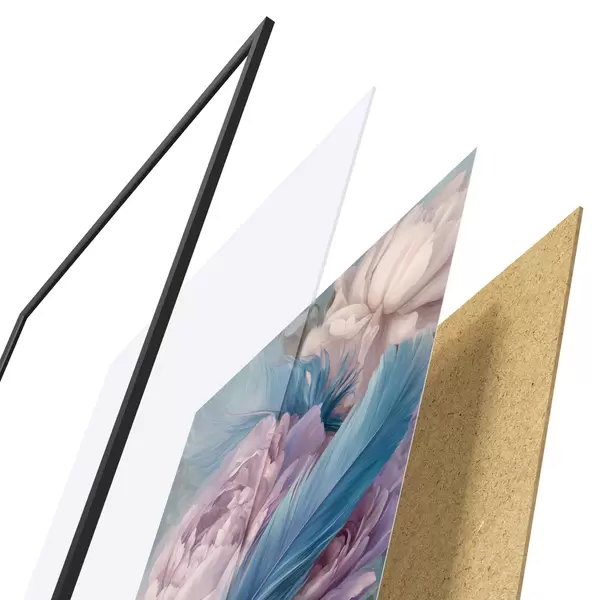 El póster consta de marco, plexiglás, imagen impresa y soporte de aglomerado. El póster puede colgarse inmediatamente en la pared gracias a los soportes de la parte posterior.