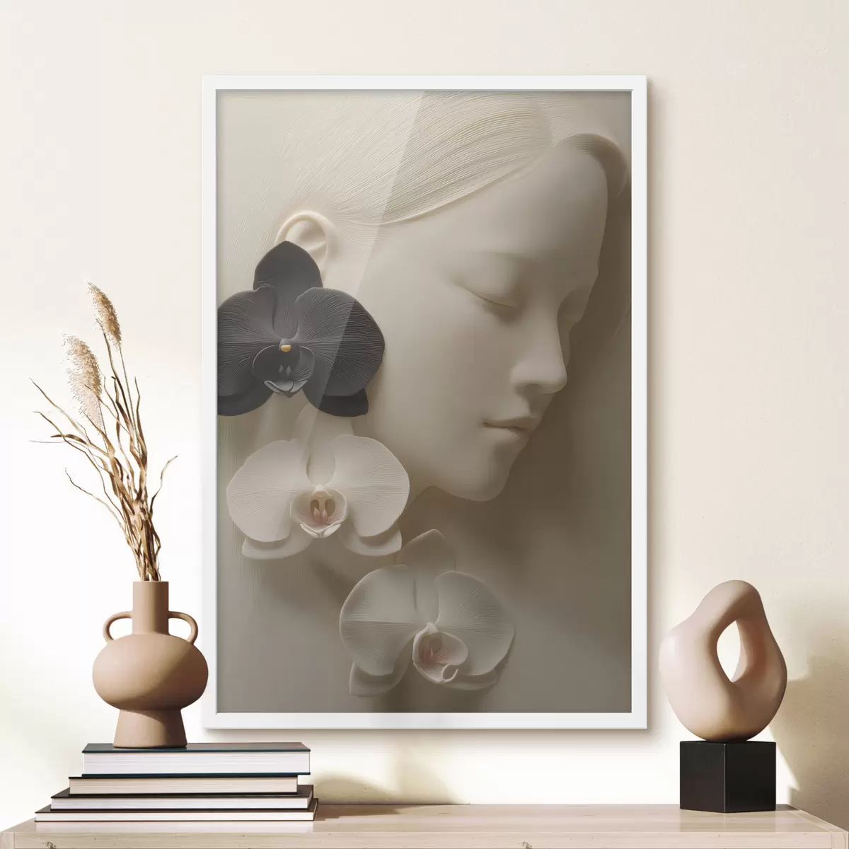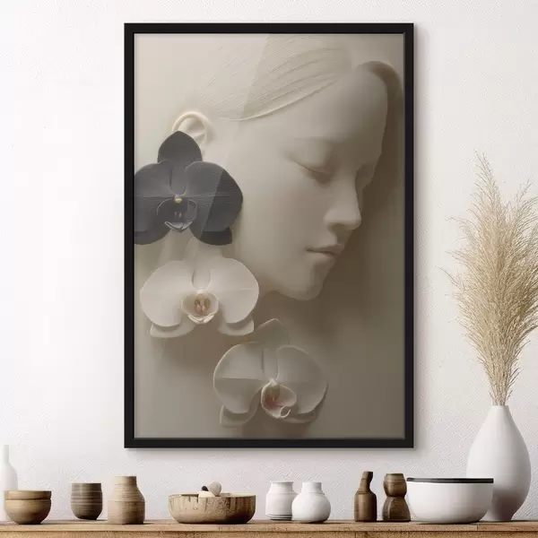 Poster Chica con orquídeas en estilo bajorrelieve f47941