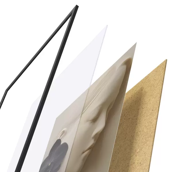 El póster consta de marco, plexiglás, imagen impresa y soporte de aglomerado. El póster puede colgarse inmediatamente en la pared gracias a los soportes de la parte posterior.