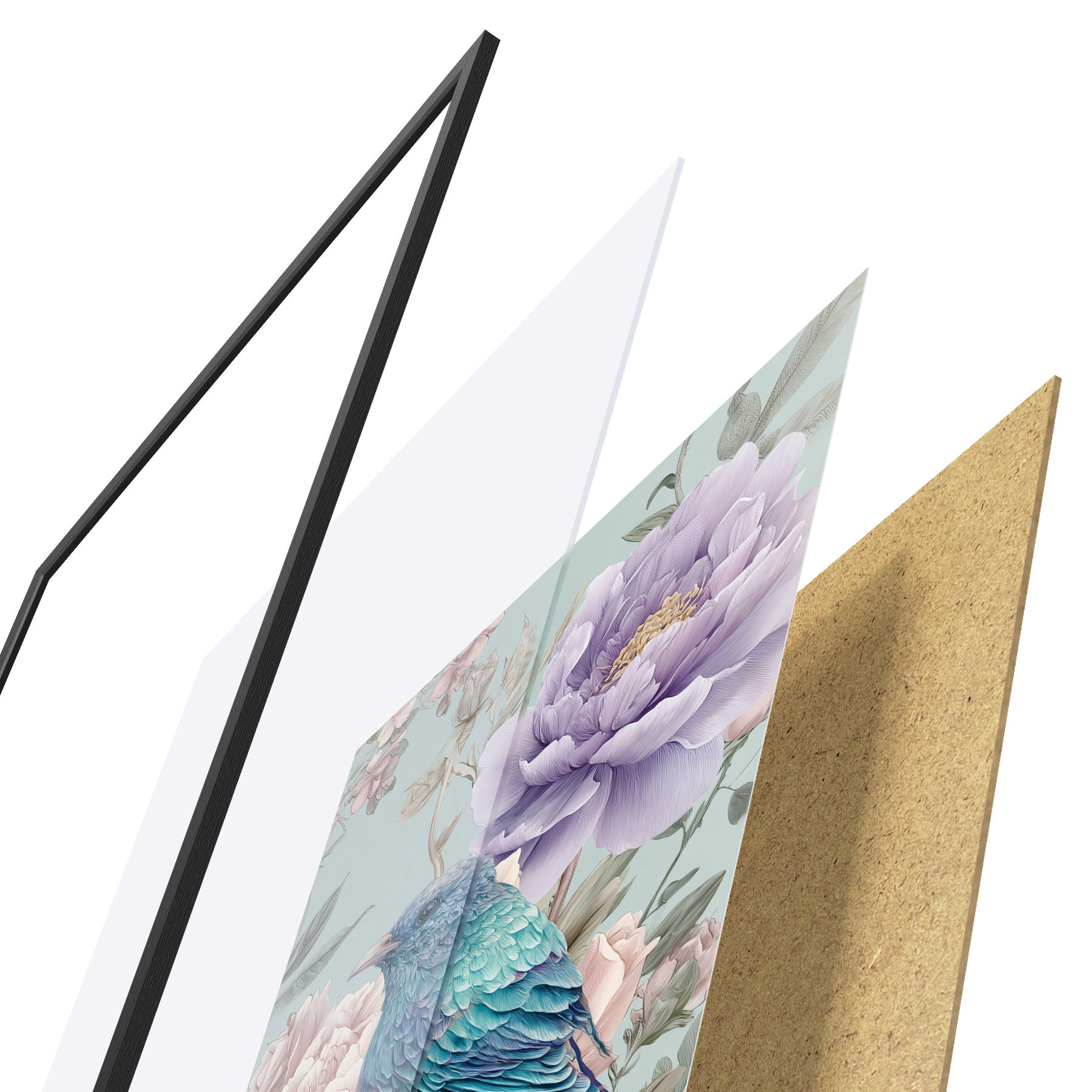 El póster consta de marco, plexiglás, imagen impresa y soporte de aglomerado. El póster puede colgarse inmediatamente en la pared gracias a los soportes de la parte posterior.