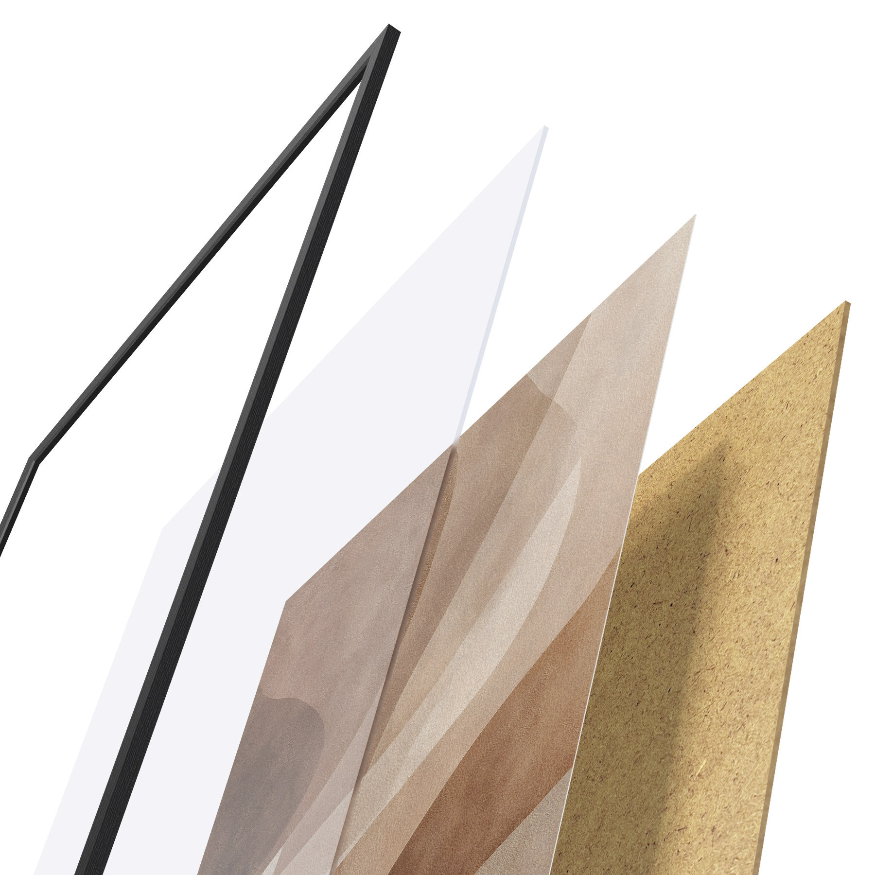 El póster consta de marco, plexiglás, imagen impresa y soporte de aglomerado. El póster puede colgarse inmediatamente en la pared gracias a los soportes de la parte posterior.