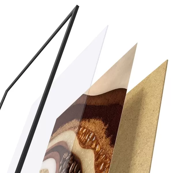 El póster consta de marco, plexiglás, imagen impresa y soporte de aglomerado. El póster puede colgarse inmediatamente en la pared gracias a los soportes de la parte posterior.