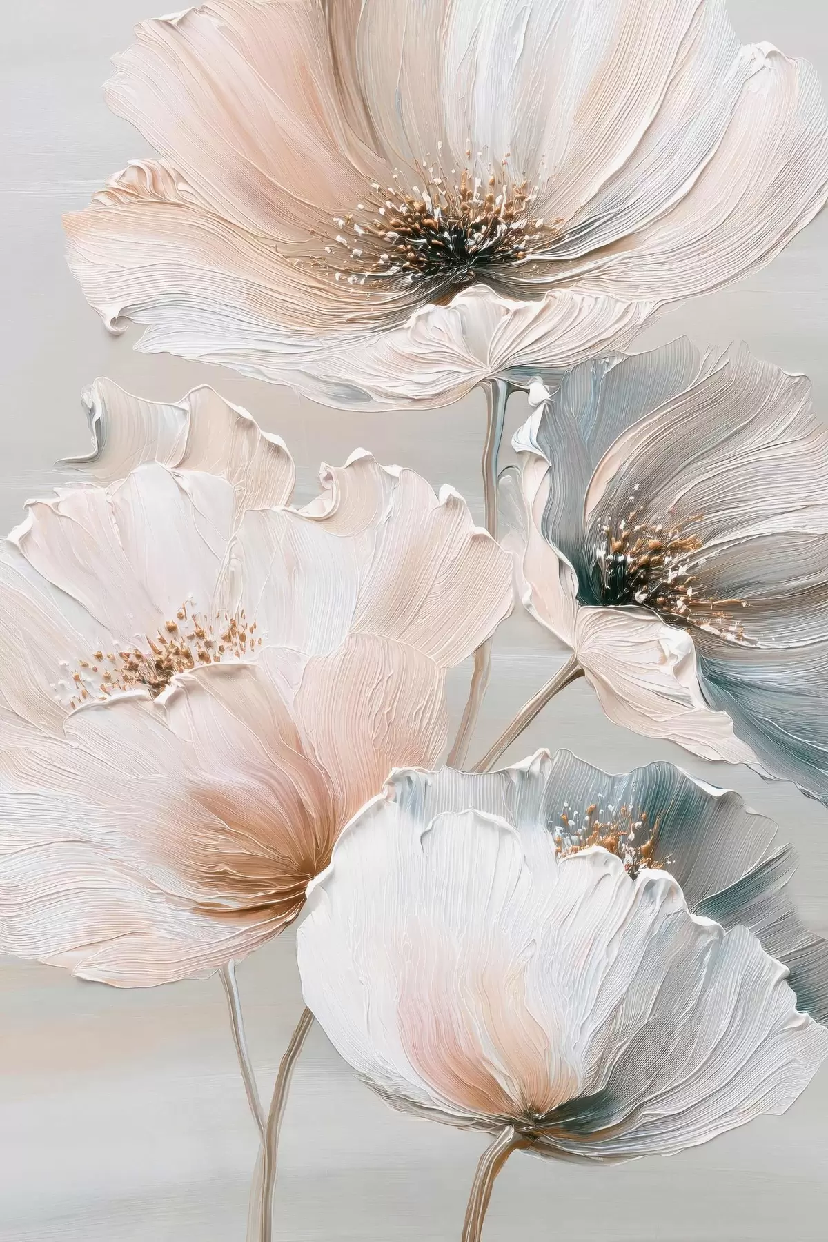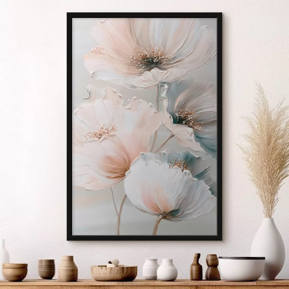 Poster Composición floral con pinceladas texturizadas en una paleta de colores beige y rosa. f47961