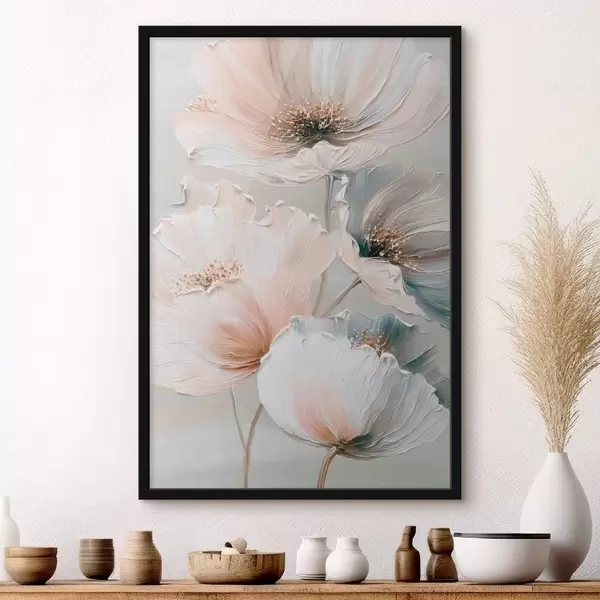 Poster Composición floral con pinceladas texturizadas en una paleta de colores beige y rosa. Nr f47961