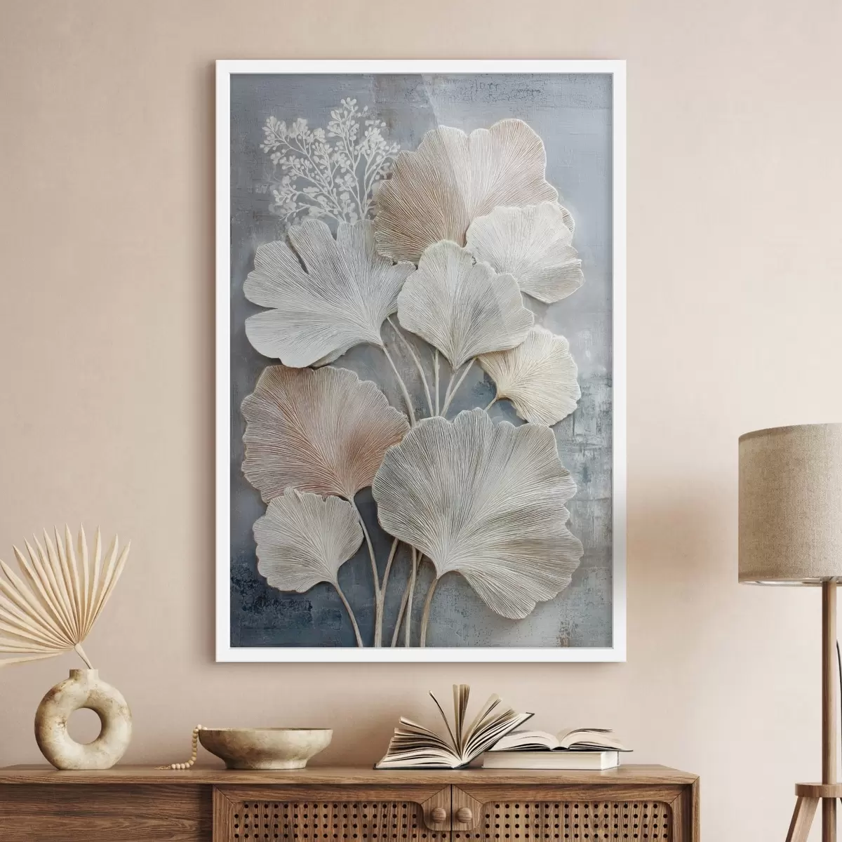 Poster Composición floral abstracta en una paleta de colores beige y azul. f47963