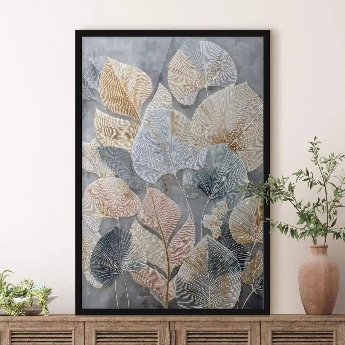 Poster Follaje decorativo multicolor con textura pronunciada sobre fondo oscuro. Nr f47964