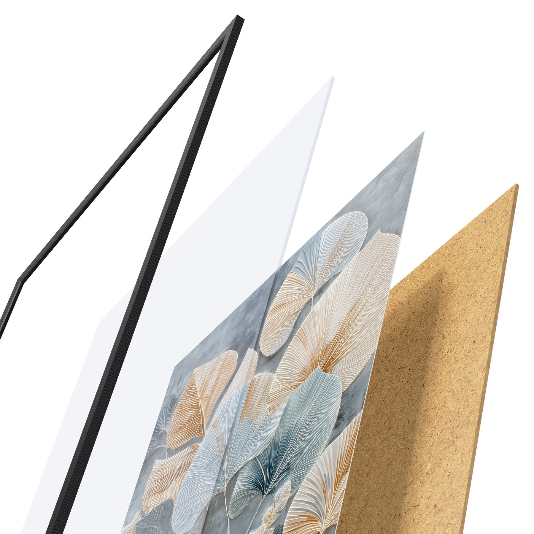 El póster consta de marco, plexiglás, imagen impresa y soporte de aglomerado. El póster puede colgarse inmediatamente en la pared gracias a los soportes de la parte posterior.