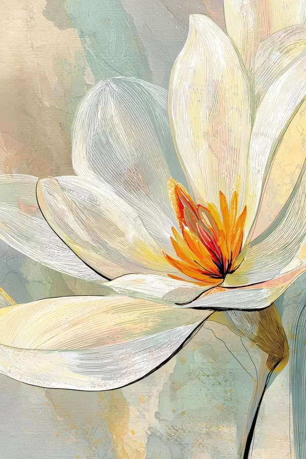 Poster Magnolias abstractas en una paleta de colores pastel con énfasis en los gráficos lineales. Nr f47970