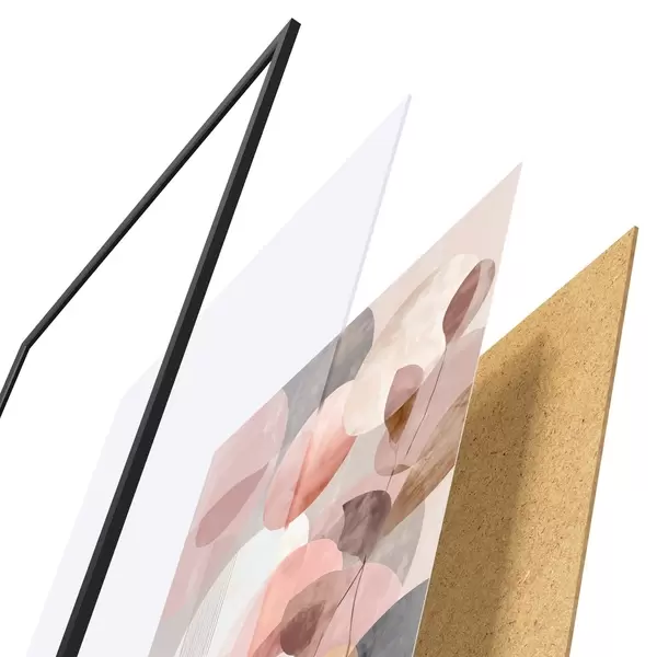 El póster consta de marco, plexiglás, imagen impresa y soporte de aglomerado. El póster puede colgarse inmediatamente en la pared gracias a los soportes de la parte posterior.