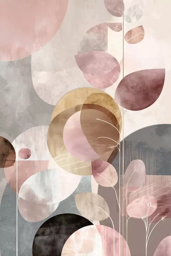 Poster Arte floral en tonos beige y rosa en estilo minimalista. Nr f47976