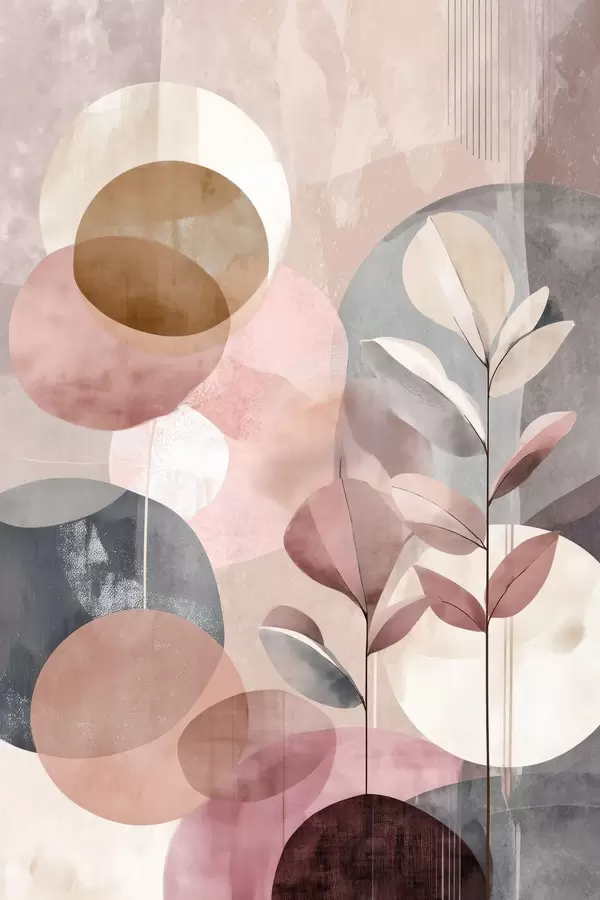 Poster Composición abstracta con círculos en una paleta de colores rosa terracota. Nr f47977