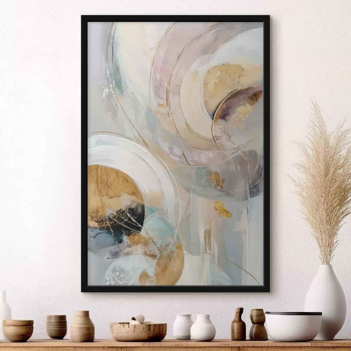 Poster Composición con elementos circulares superpuestos y pinceladas Nr f47983
