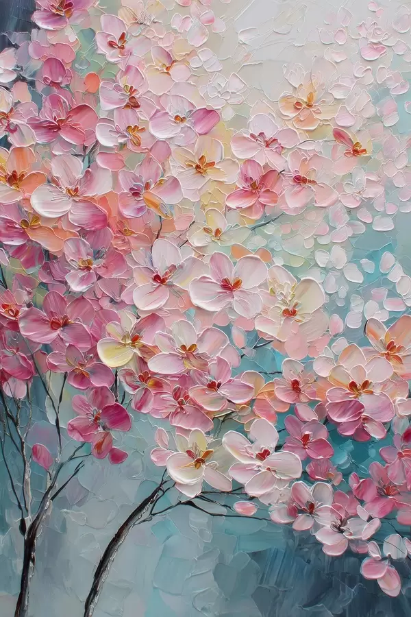Poster Rama con flores rosas sobre fondo azul en estilo pintura al óleo. f47987