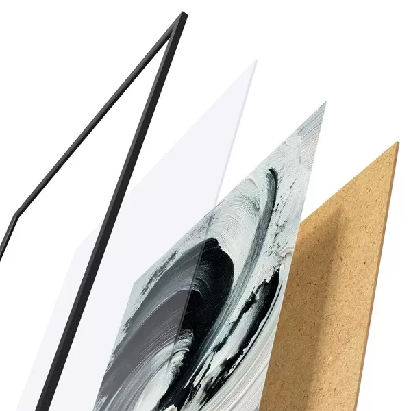 El póster consta de marco, plexiglás, imagen impresa y soporte de aglomerado. El póster puede colgarse inmediatamente en la pared gracias a los soportes de la parte posterior.