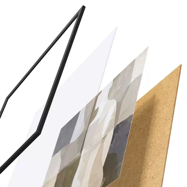 El póster consta de marco, plexiglás, imagen impresa y soporte de aglomerado. El póster puede colgarse inmediatamente en la pared gracias a los soportes de la parte posterior.