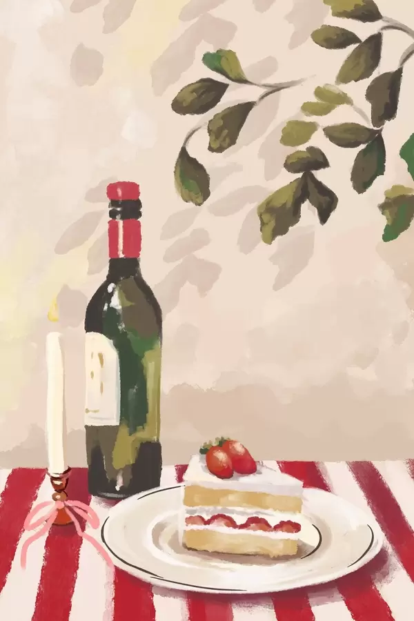 Poster Naturaleza muerta con vino, vela y pastel Nr f48024