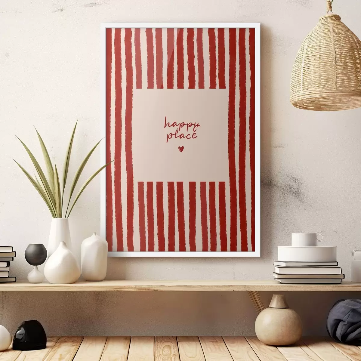 Poster Rayas rojas con texto «happy place» (lugar feliz) f48025