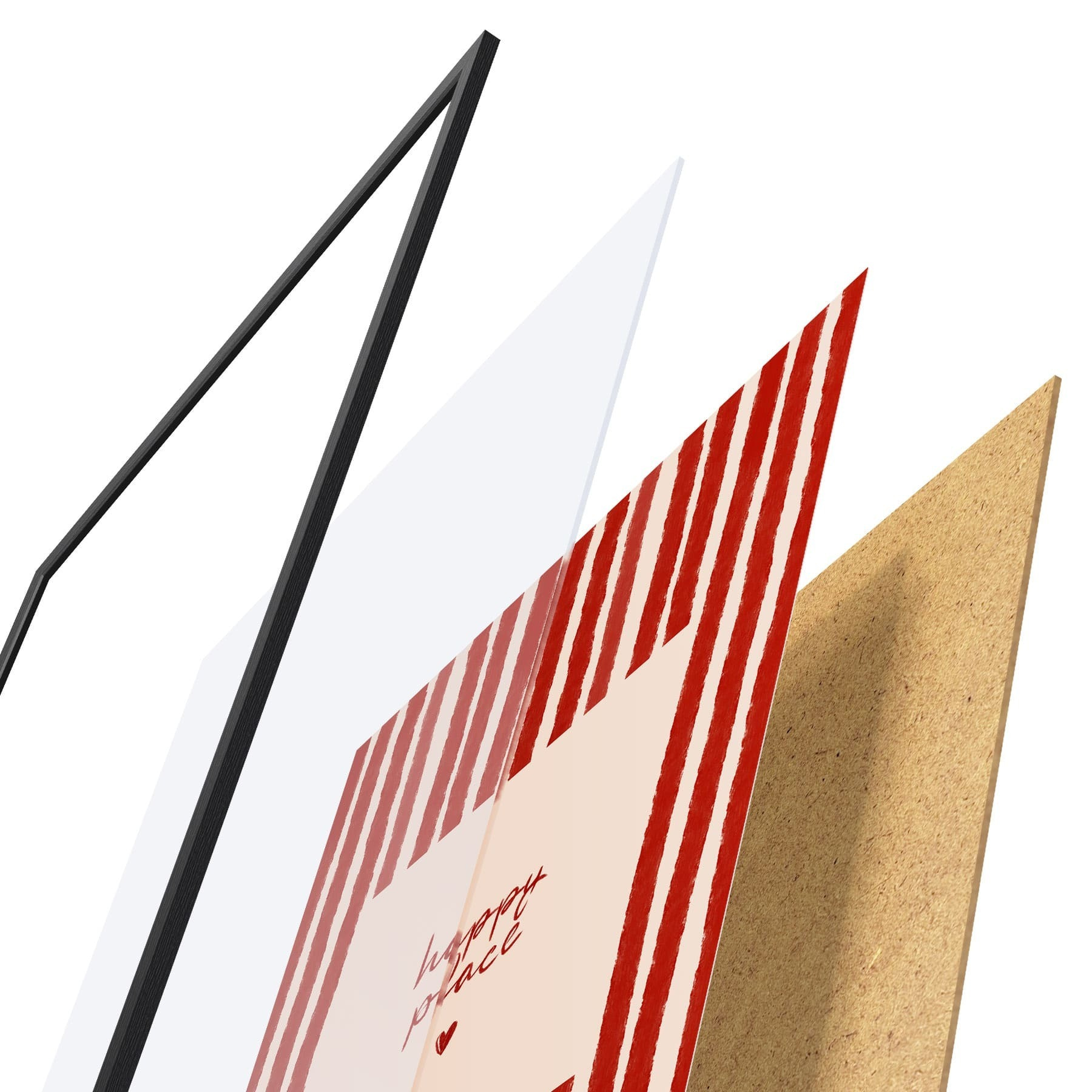 El póster consta de marco, plexiglás, imagen impresa y soporte de aglomerado. El póster puede colgarse inmediatamente en la pared gracias a los soportes de la parte posterior.