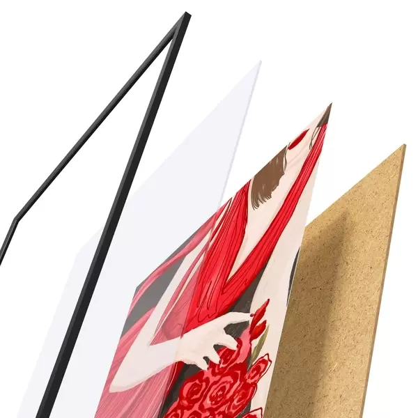 El póster consta de marco, plexiglás, imagen impresa y soporte de aglomerado. El póster puede colgarse inmediatamente en la pared gracias a los soportes de la parte posterior.
