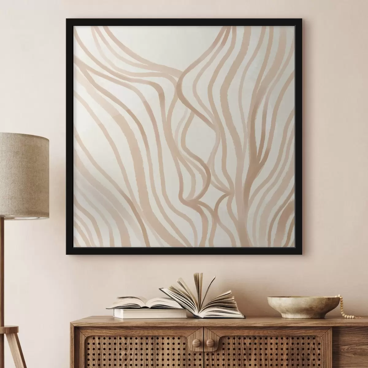 Poster Líneas onduladas abstractas en tonos beige f48027