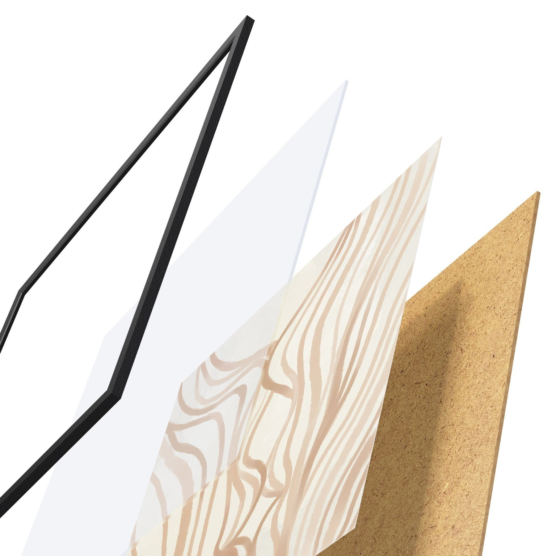 El póster consta de marco, plexiglás, imagen impresa y soporte de aglomerado. El póster puede colgarse inmediatamente en la pared gracias a los soportes de la parte posterior.