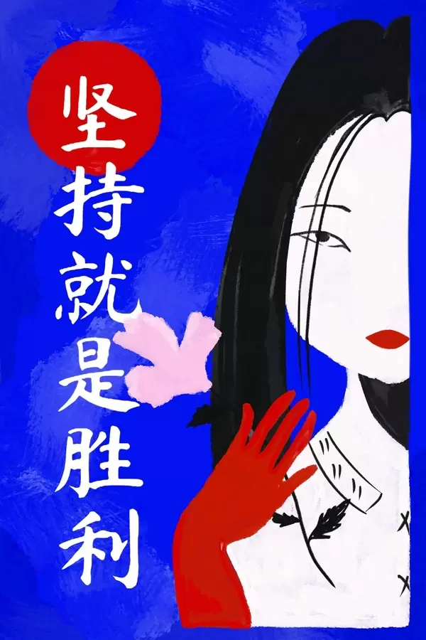 Poster Retrato estilizado de una mujer con fondo azul y texto Nr f48032