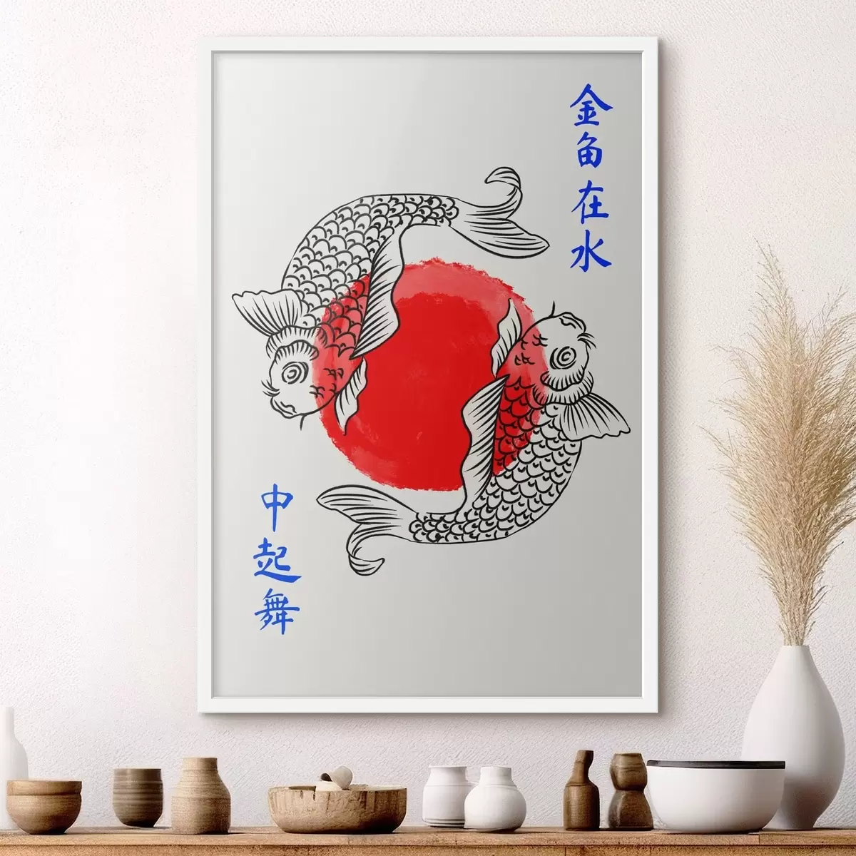 Poster Dos peces decorativos alrededor de un círculo rojo f48033