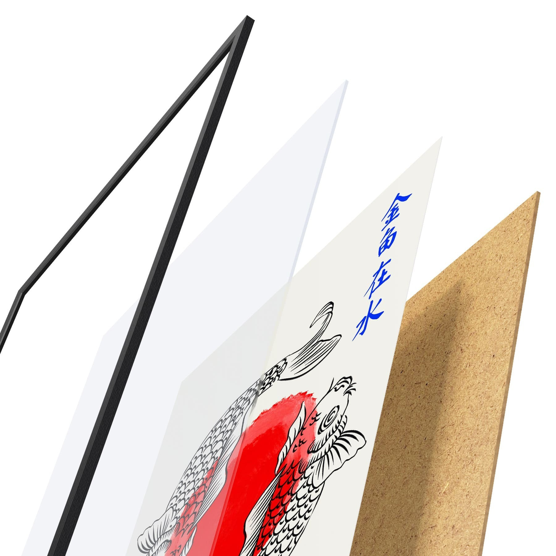 El póster consta de marco, plexiglás, imagen impresa y soporte de aglomerado. El póster puede colgarse inmediatamente en la pared gracias a los soportes de la parte posterior.