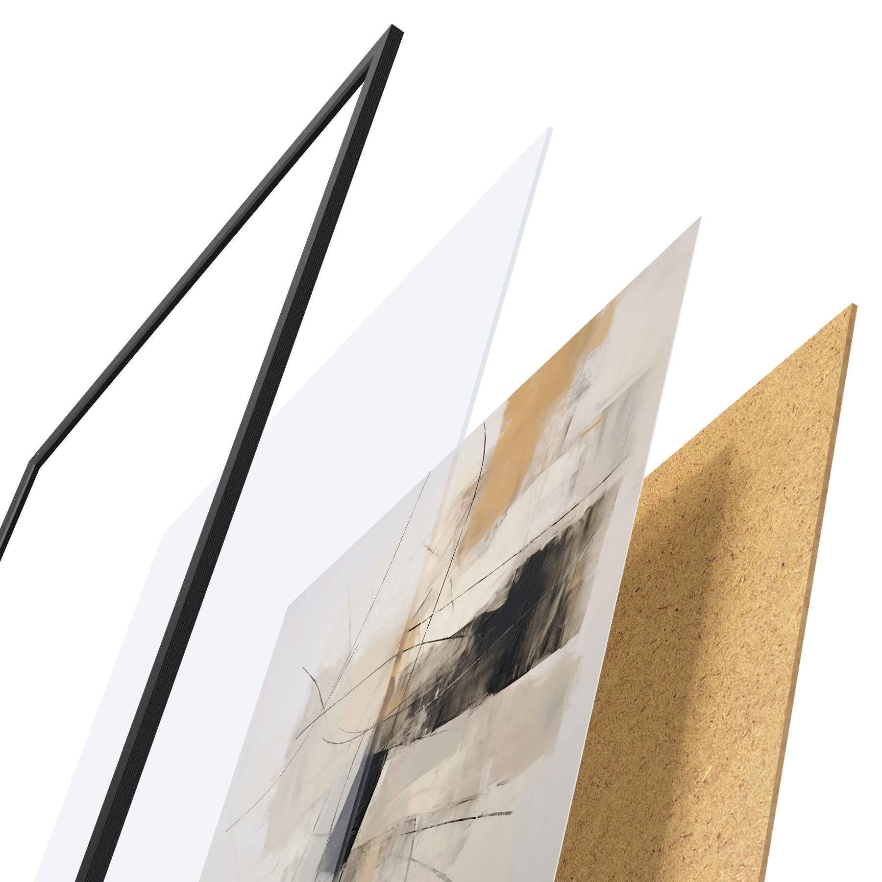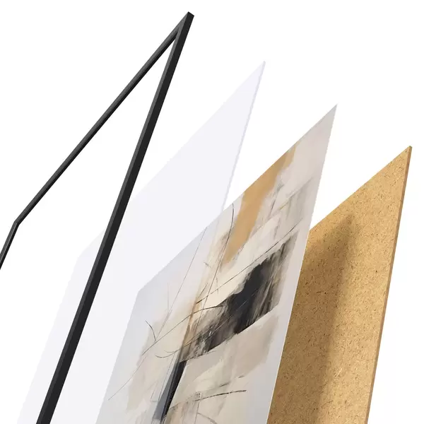 El póster consta de marco, plexiglás, imagen impresa y soporte de aglomerado. El póster puede colgarse inmediatamente en la pared gracias a los soportes de la parte posterior.
