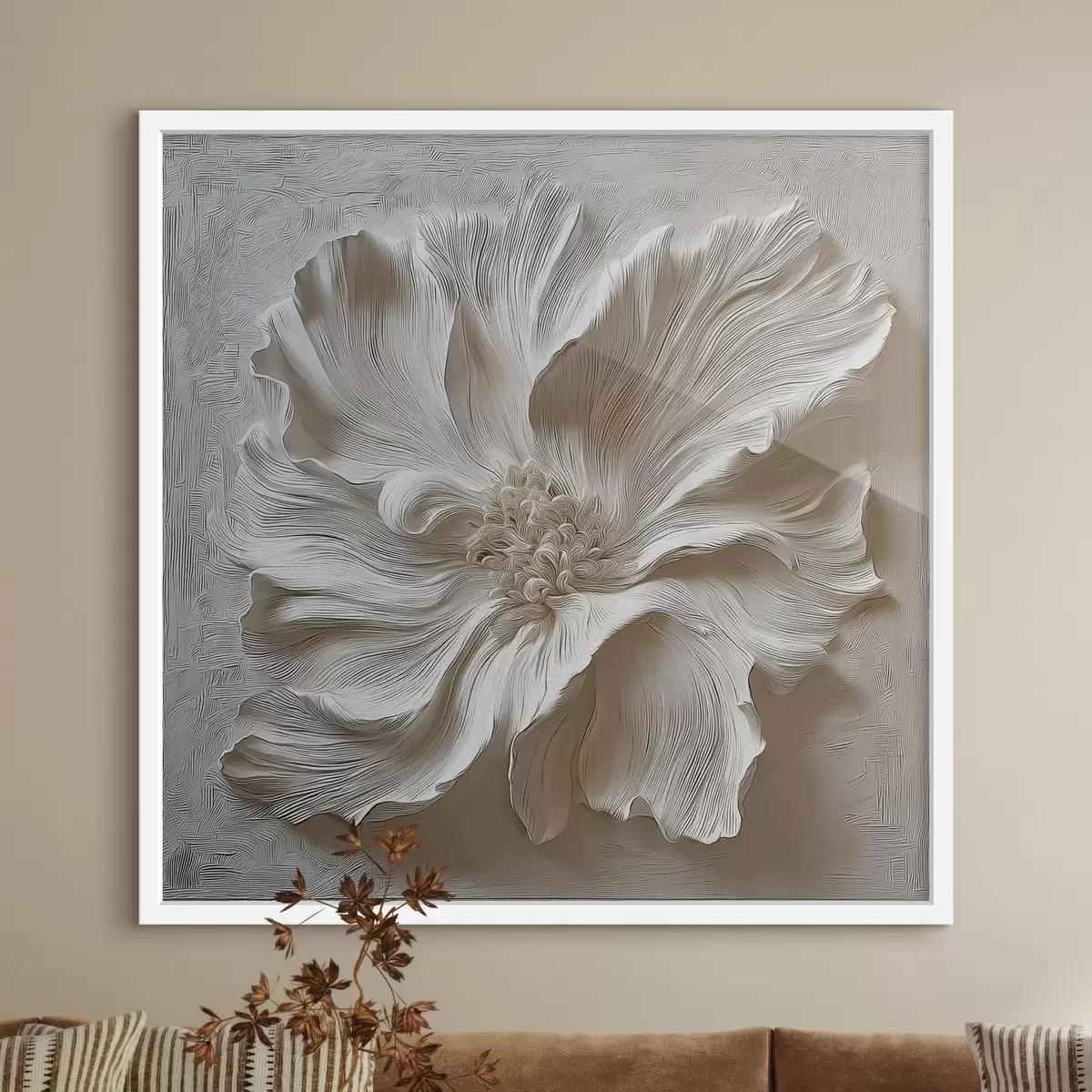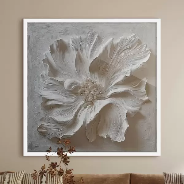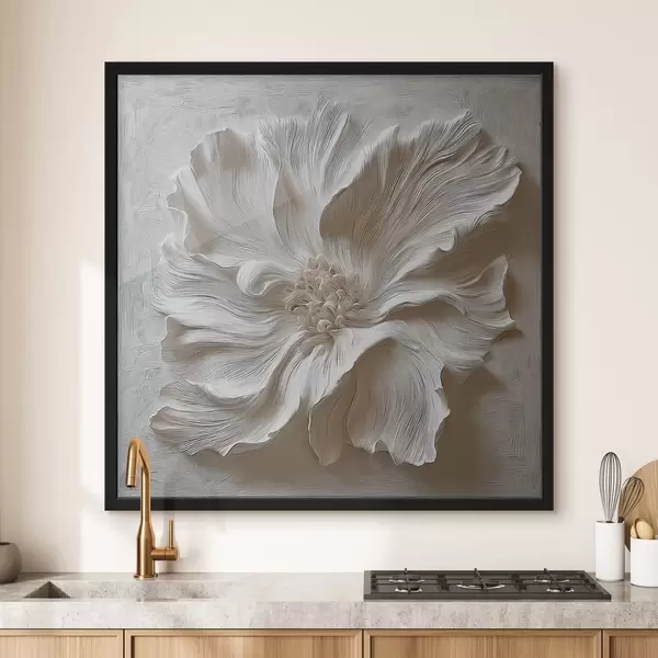 Poster Escultura floral en relieve de yeso blanco. f48065