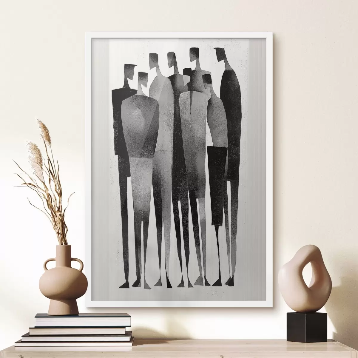 Poster Figuras humanas minimalistas y alargadas colocadas en fila. f48069