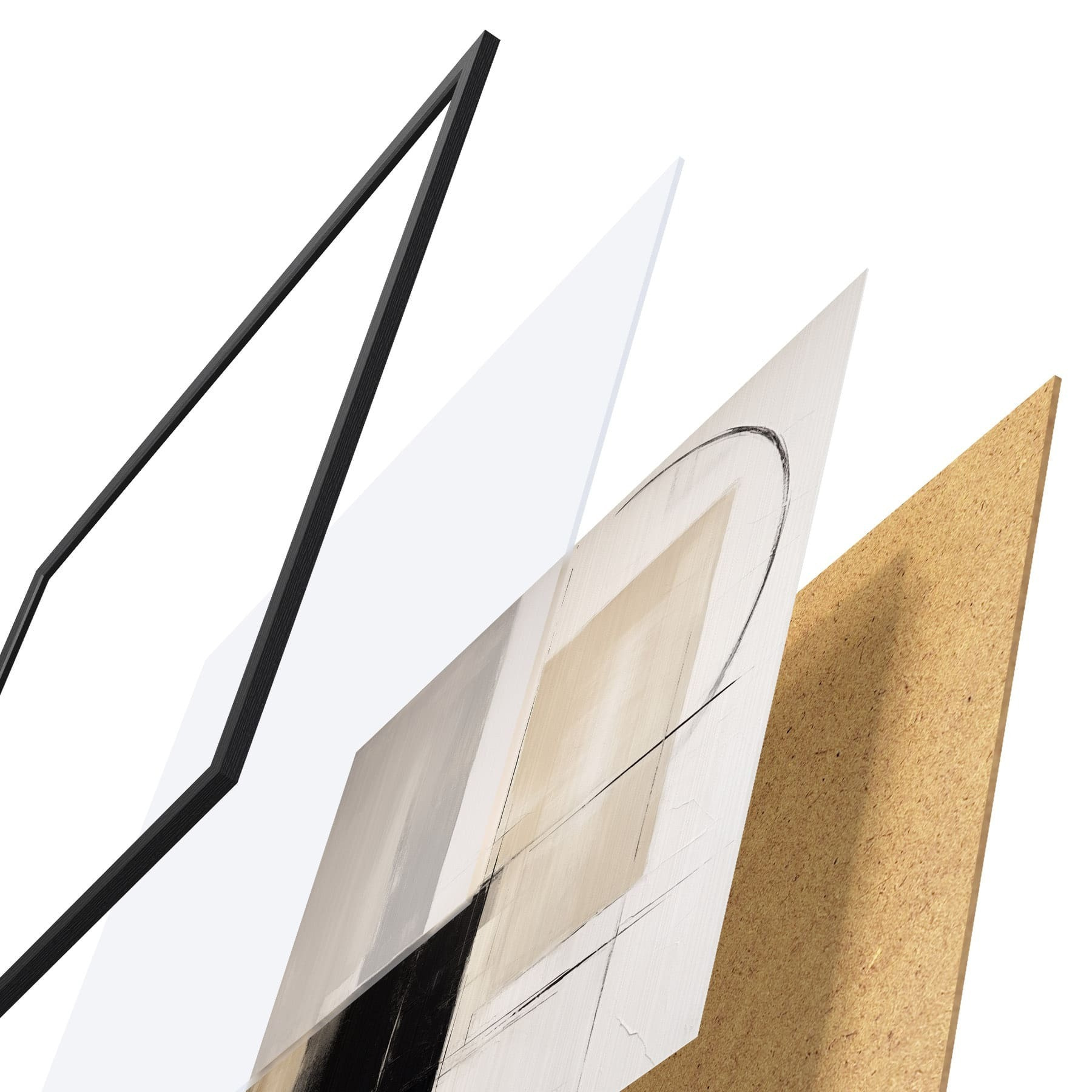 El póster consta de marco, plexiglás, imagen impresa y soporte de aglomerado. El póster puede colgarse inmediatamente en la pared gracias a los soportes de la parte posterior.
