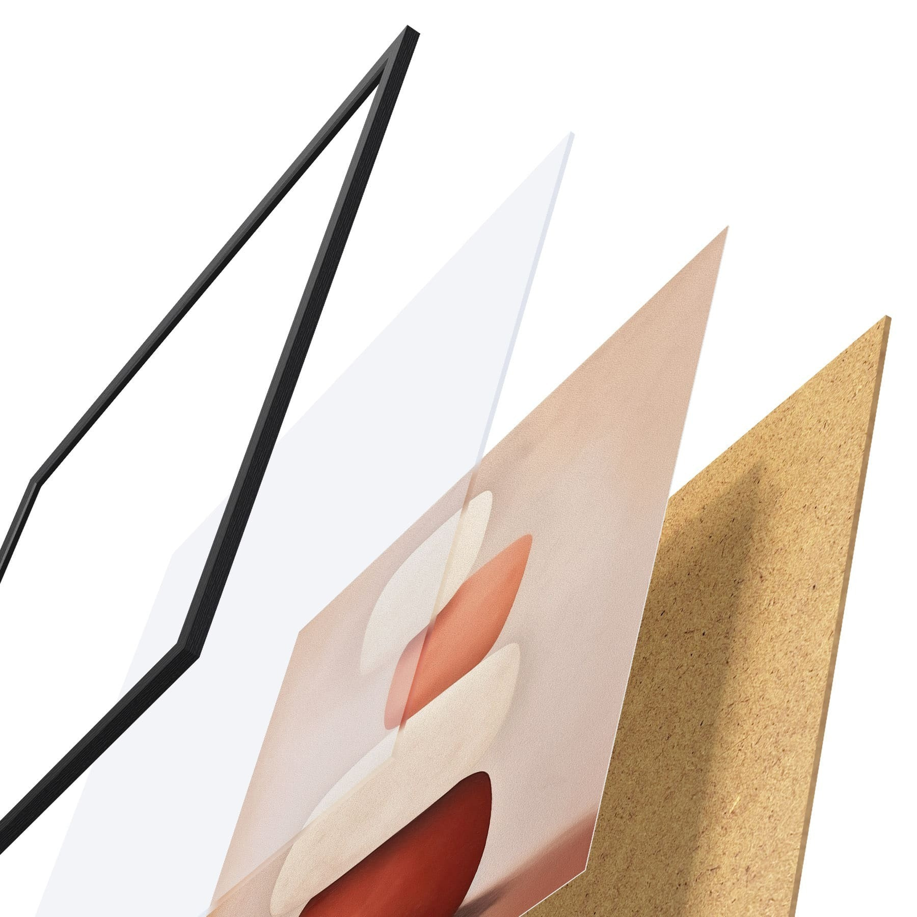 El póster consta de marco, plexiglás, imagen impresa y soporte de aglomerado. El póster puede colgarse inmediatamente en la pared gracias a los soportes de la parte posterior.