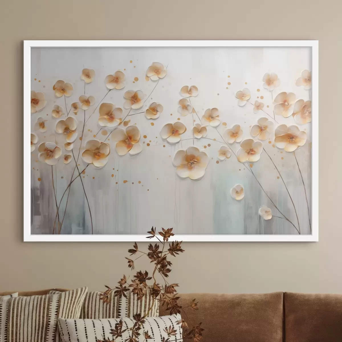Poster Flores claras con toques naranjas f48087