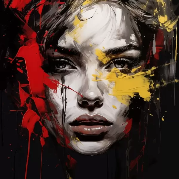 Poster Retrato de mujer con trazos rojos y amarillos Nr f48089
