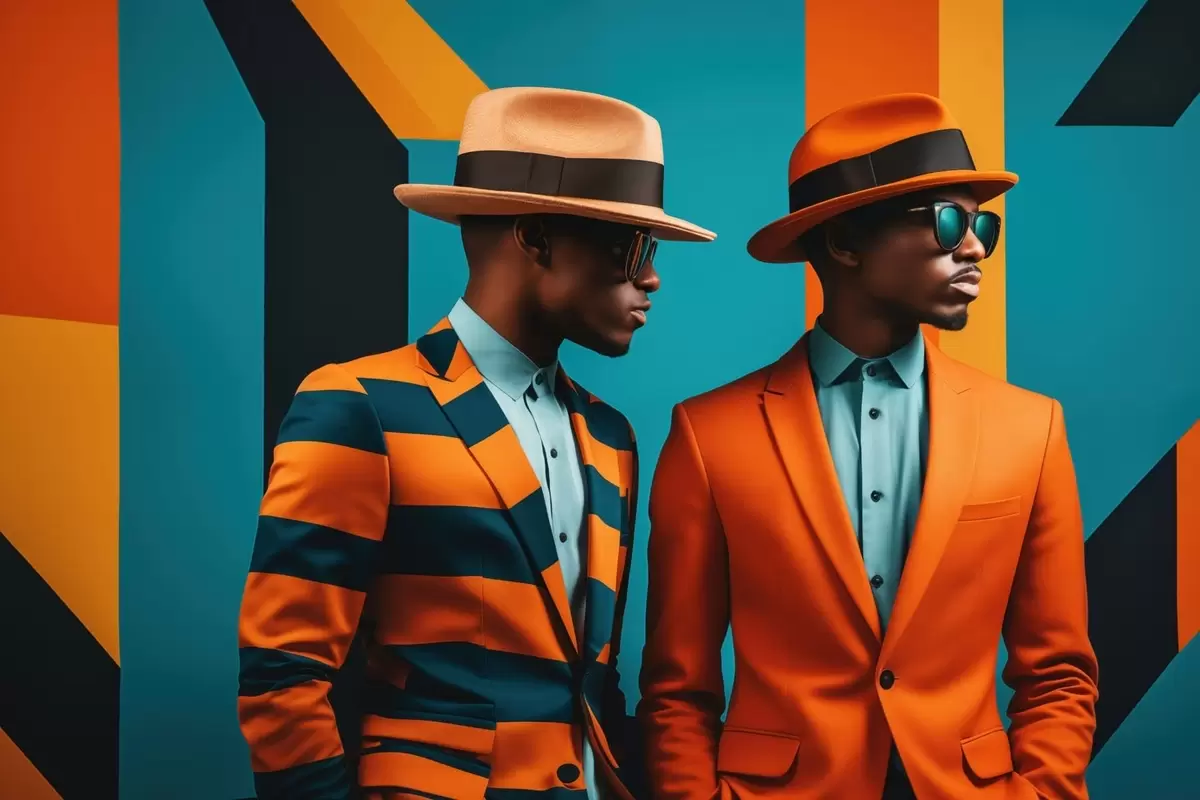 Poster Dos hombres con trajes brillantes y sombreros. Nr f48091