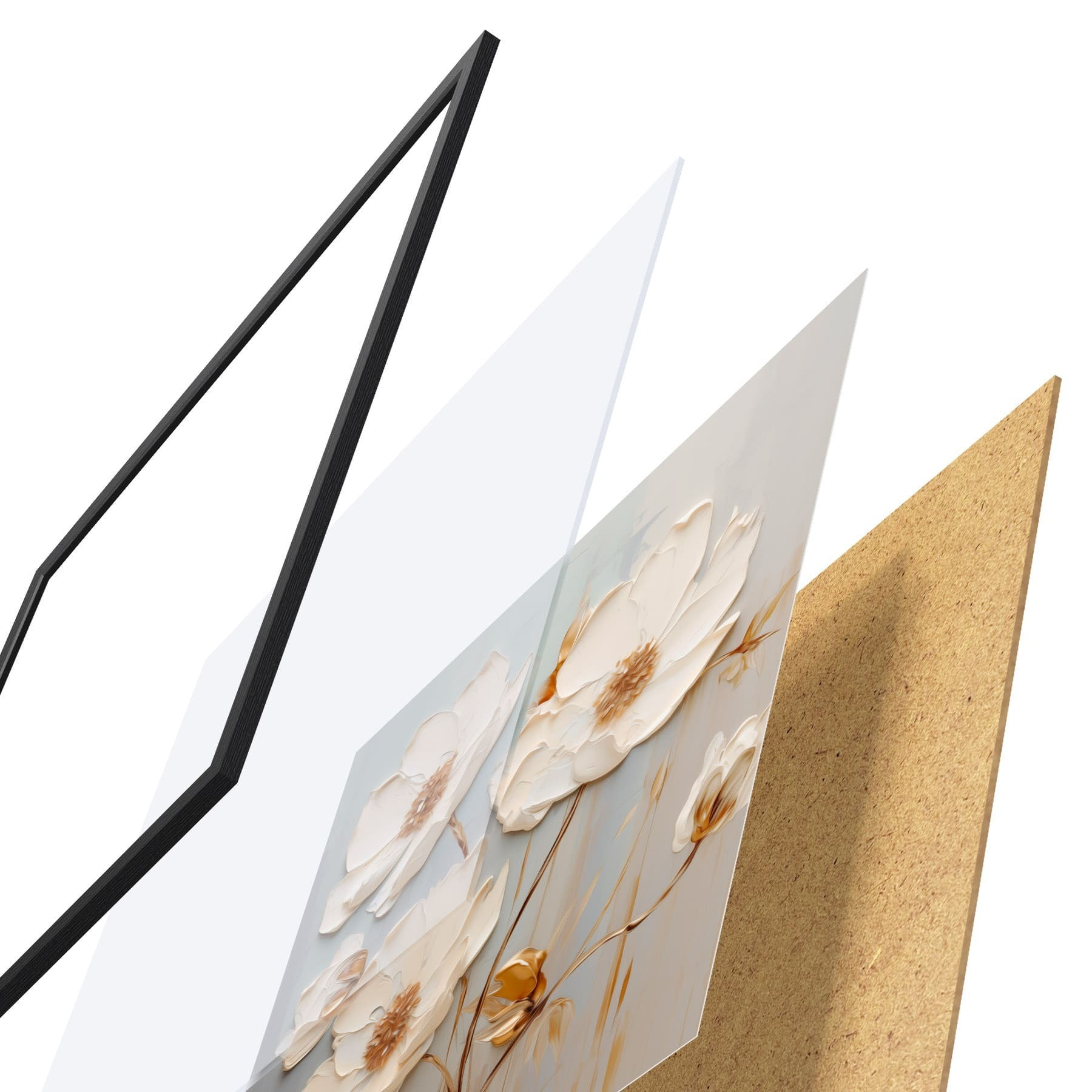 El póster consta de marco, plexiglás, imagen impresa y soporte de aglomerado. El póster puede colgarse inmediatamente en la pared gracias a los soportes de la parte posterior.