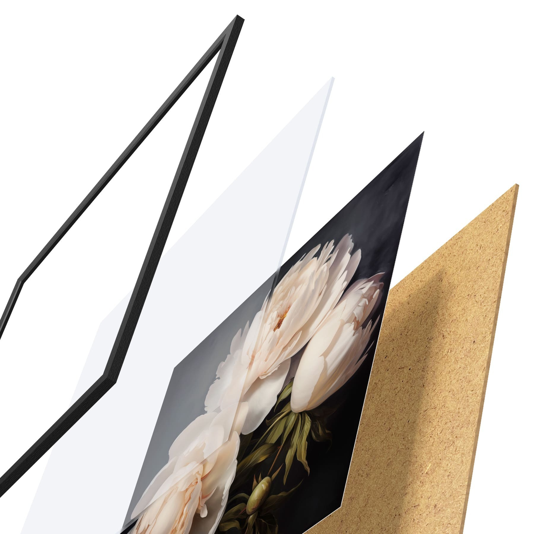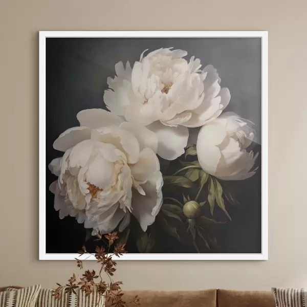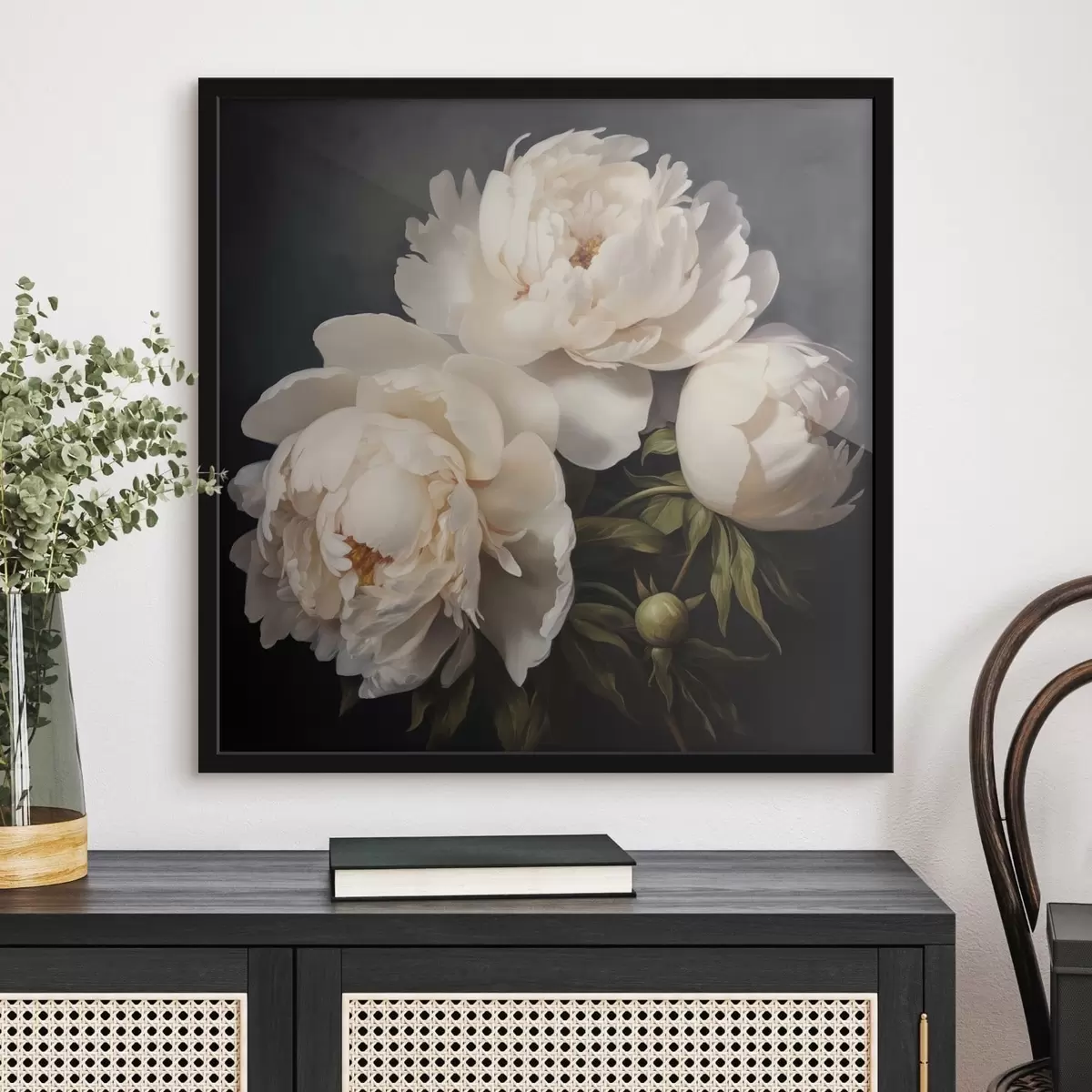 Poster Peonías blancas sobre fondo oscuro Nr f48101