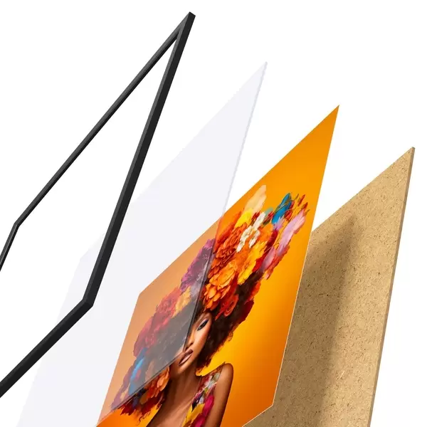 El póster consta de marco, plexiglás, imagen impresa y soporte de aglomerado. El póster puede colgarse inmediatamente en la pared gracias a los soportes de la parte posterior.