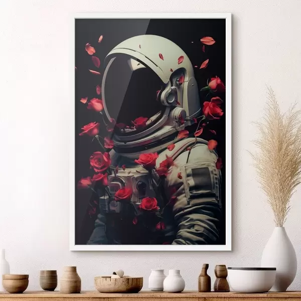 Poster Retrato surrealista de un astronauta con traje espacial blanco. f48113