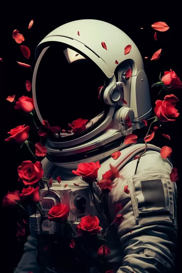 Poster Retrato surrealista de un astronauta con traje espacial blanco. f48113
