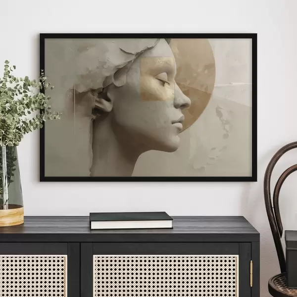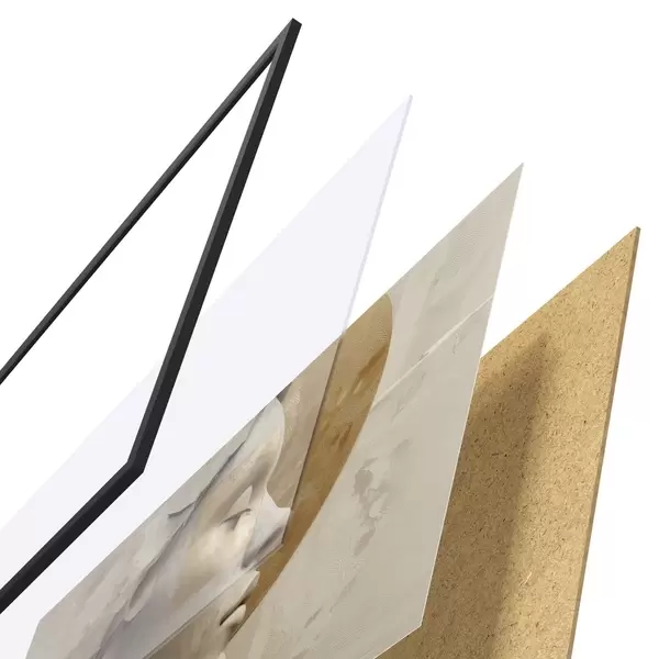 El póster consta de marco, plexiglás, imagen impresa y soporte de aglomerado. El póster puede colgarse inmediatamente en la pared gracias a los soportes de la parte posterior.