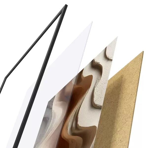 El póster consta de marco, plexiglás, imagen impresa y soporte de aglomerado. El póster puede colgarse inmediatamente en la pared gracias a los soportes de la parte posterior.