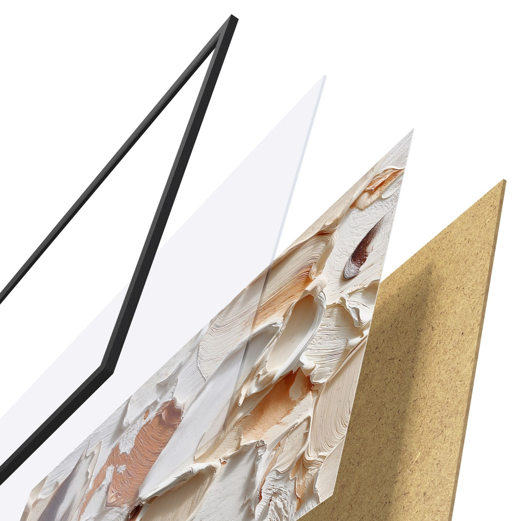 El póster consta de marco, plexiglás, imagen impresa y soporte de aglomerado. El póster puede colgarse inmediatamente en la pared gracias a los soportes de la parte posterior.