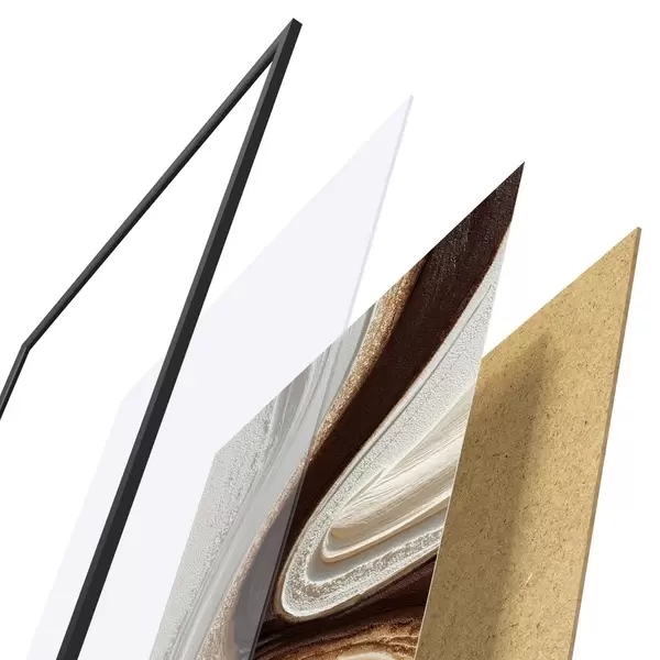 El póster consta de marco, plexiglás, imagen impresa y soporte de aglomerado. El póster puede colgarse inmediatamente en la pared gracias a los soportes de la parte posterior.
