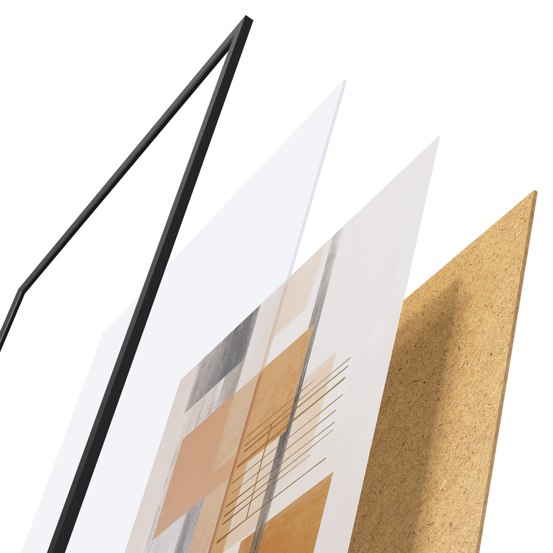 El póster consta de marco, plexiglás, imagen impresa y soporte de aglomerado. El póster puede colgarse inmediatamente en la pared gracias a los soportes de la parte posterior.