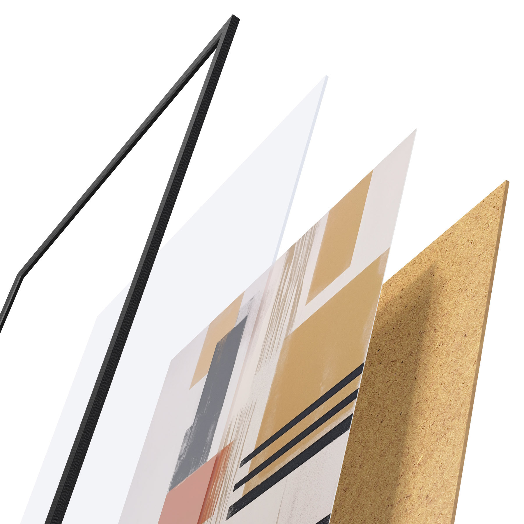 El póster consta de marco, plexiglás, imagen impresa y soporte de aglomerado. El póster puede colgarse inmediatamente en la pared gracias a los soportes de la parte posterior.