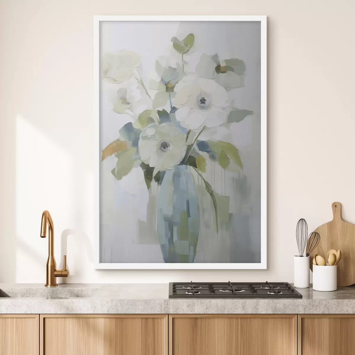 Poster Flores con follaje en un jarrón, pintura de imitación. Nr f48168