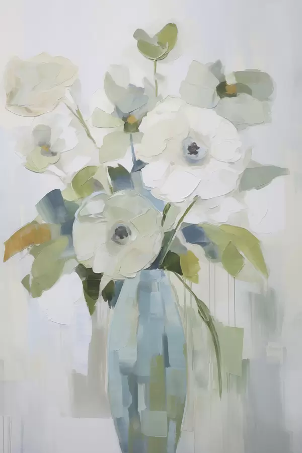 Poster Flores con follaje en un jarrón, pintura de imitación. Nr f48168